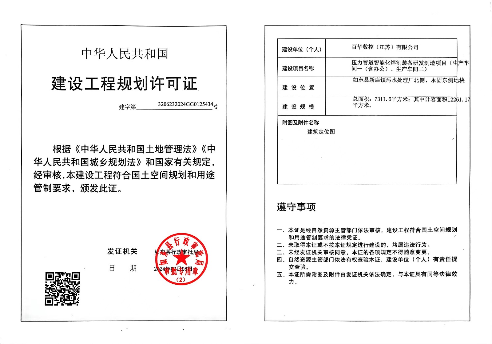 压力管道智能化焊割装备研发制造项目(生产车间一(含办公)、生产车间二)建设工程规划许可证批后公布
