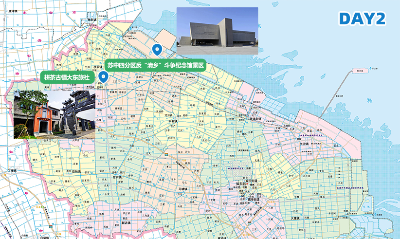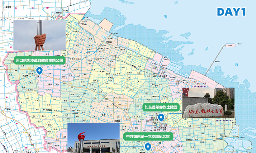 上午:(如东收费站下高速)亚振家居工业旅游区参观海派艺术馆及体验榫卯木工小件制作、国家农业融合产业园采摘和农事体验(桃源居、虹桥四季采摘园等)/如东欢乐世界游玩拓展和昆虫世界科普; 中午:如东海鲜美食街用餐; 下午:游览国清寺遗址公园、如东革命烈士纪念馆、上河印巷/如东规划馆/如东文化中心了解如东文化; 晚餐:上河印巷南锣鼓巷用餐,后观看魔方杂技剧场; 住宿:县城各大宾馆酒店(锦恒君澜、希尔顿、海洲、黄海等)