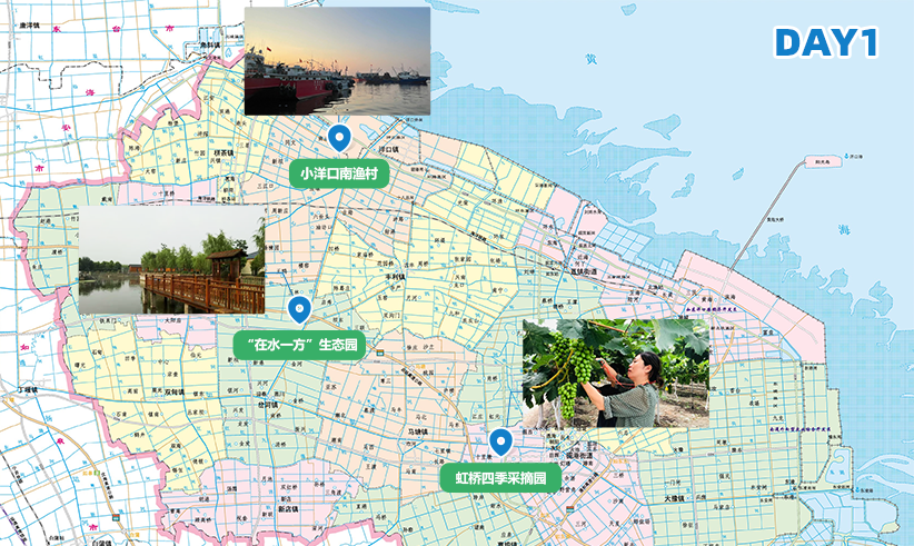 春有百花夏有荷,最是乡村能醉人。走入【虹桥四季采摘园】,亲自采摘橘子、桃子、阳光玫瑰葡萄等四季水果,享受现摘先吃的新鲜甜美。带上采摘好的水果,来到【“在水一方”生态园】,露营烧烤、垂钓赏花,尽享野趣。晚上可以前往【小洋口南渔村】,跟着渔民同吃、同住、同下海,体验新时代渔民的欢乐和幸福。